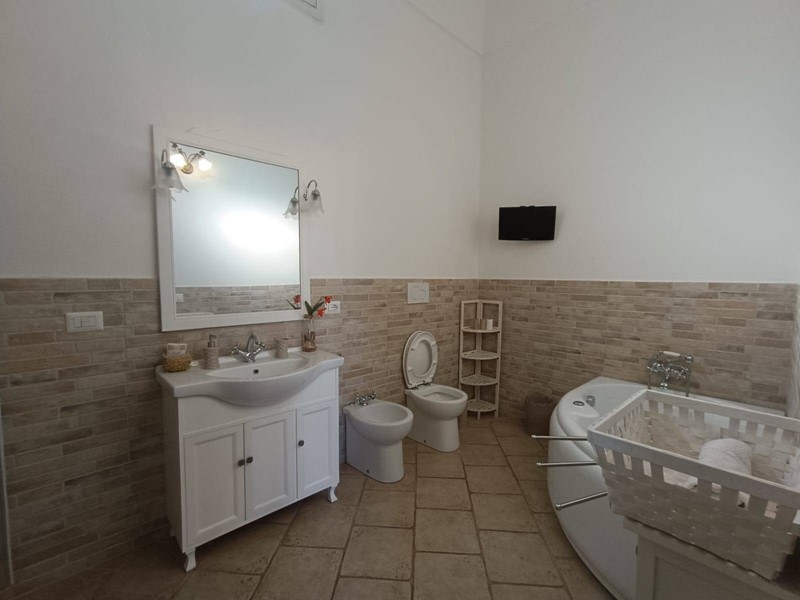 Nel cuore di Alezio, tra le incantevoli vie della città vecchia, disponibile meravigliosa dimora storica finemente ristrutturata e adibita a struttura ricettiva. L'immobile, della superficie complessiva di circa 200 mq, si compone di un ingresso, un corridoio, quattro camere da letto con bagno privato, una delle quali può ospitare fino a quattro persone. Tutte le camere sono provviste di balcone e una di esse all'interno del bagno privato possiede anche una vasca idromassaggio. Sempre sullo stesso piano vi è una cucina e un deposito/lavanderia. La proprietà continua con una bellissima zona scoperta arredata con dei graziosi salottini. Al piano superiore vi è una bellissima terrazza sulla quale si può realizzare una zona relax o solarium. Al piano terra, con eventuale accesso indipendente rispetto al resto della struttura, vi è un ulteriore vano destinato a diventare centro SPA. La soluzione proposta è l'investimento ideale per chi desidera investire nel settore ricettivo in uno dei comuni più gettonati durante la stagione estiva.