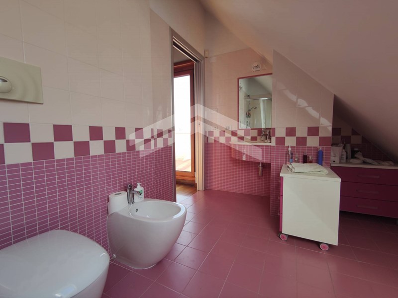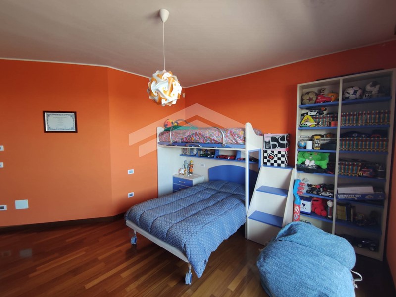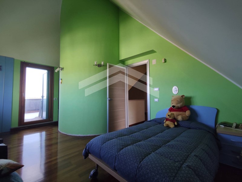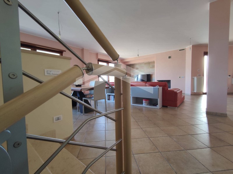 nel seminterrato ci sono due cantine, locale tecnico e grande garage; al primo piano troviamo una bellissima ed ampia zona living con camino e terrazzo, studio, bagno, dispensa ed una bellissima cucina con camino e due terrazzi; salendo al secondo piano, tramite una bellissima scala in marmo su misura, si apre la zona notte, tutta in parquet, nella quale ci accolgono tre camere da letto di cui una con bagno privato, terrazzi con affaccio su un panorama mozzafiato ed altro bagno con vasca idromassaggio; nell'ultimo livello troviamo un comodo vano lavanderia con altro terrazzino.