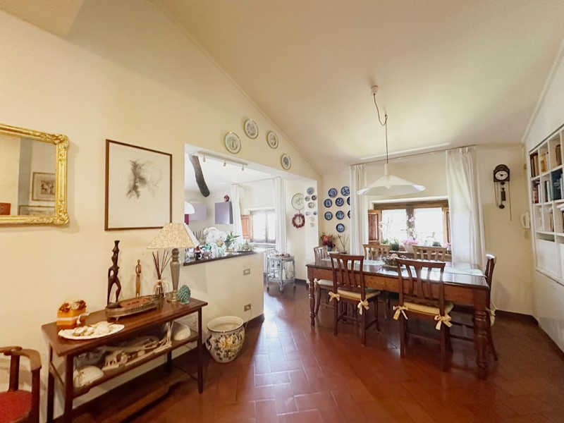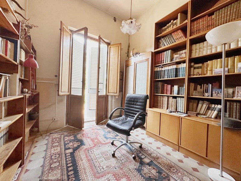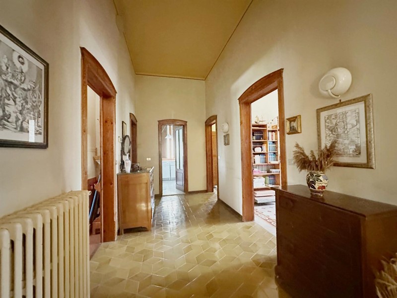 La villa si sviluppa su tre piani per una superficie totale di circa 390 mq ed è attualmente suddivisa in due unità immobiliari indipendenti. Gli ambienti interni conservano dettagli originali di grande pregio, come pavimenti in cementine Tessieri e soffitti decorati. Il piano terra accoglie un ampio ingresso, soggiorno, cucina, studio, salottino con caminetto e bagno. Al piano superiore si trovano quattro camere matrimoniali, un secondo bagno e uno studio. L’ultimo piano ospita una suggestiva mansarda con travi a vista, soggiorno con camino, cucina abitabile, sala da pranzo, due camere e doppi servizi.