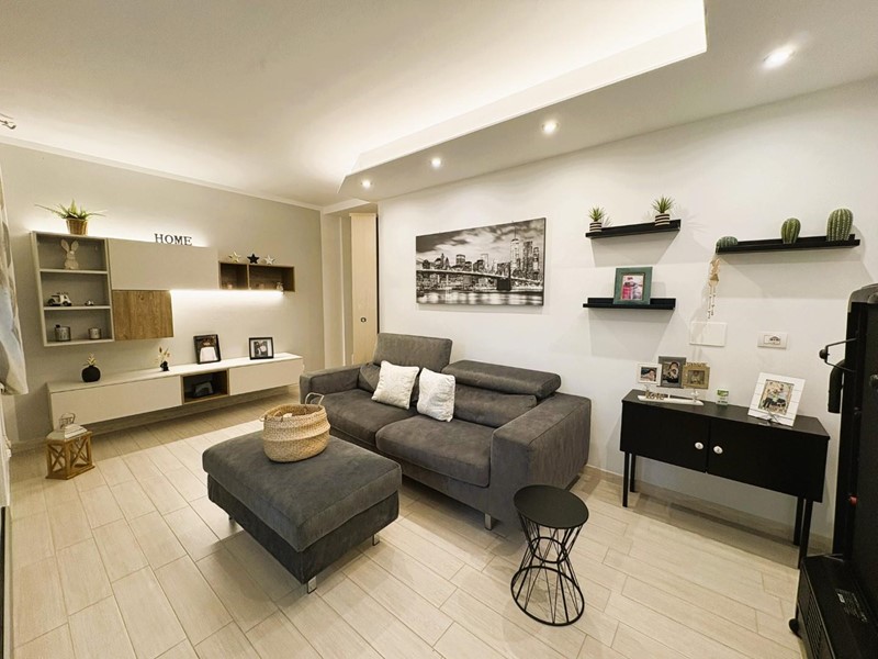 Inserito in palazzina costruita nel 2012, al piano terra troviamo una zona giorno con angolo cottura attualmente utilizzata solo come soggiorno, disimpegno, camera da letto matrimoniale, camera da letto singola e servizio igienico con box doccia e finestra.