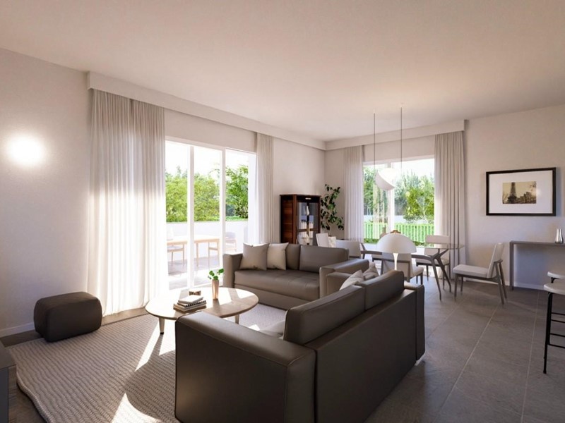 La VILLA BIFAMILIARE distribuita su due livelli é composta al piano terra da cucina e ampio soggiorno in pianta aperta che si affaccia sul loggiato tramite una bella vetrata scorrevole, bagno e locale tecnico; al piano primo troviamo un disimpegno notte, tre camere da letto con secondo bagno, ripostiglio e terrazzo. Il giardino distribuito su tre lati per una superficie di circa 380 Mq offre anche un ampio parcheggio.
