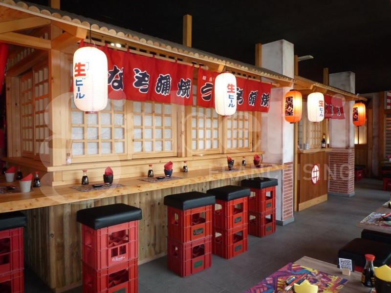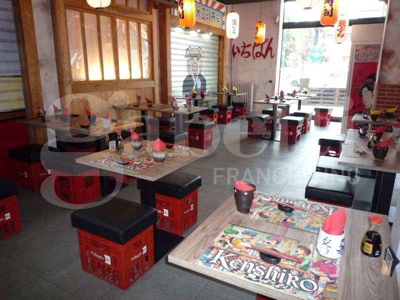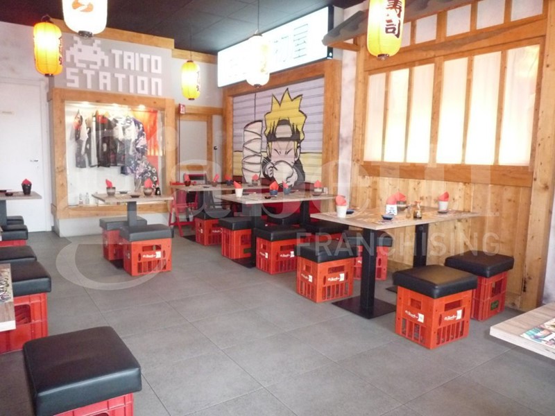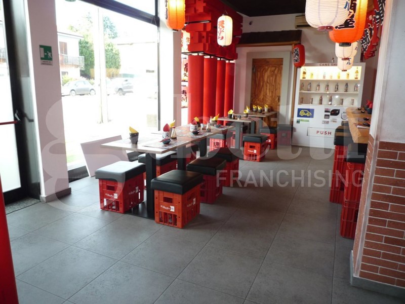 Il ristorante ha 4 vetrine su strada, vanta 60 posti interni e 30 posti esterni, il tutto con layout tipico Japan Street/Manga.