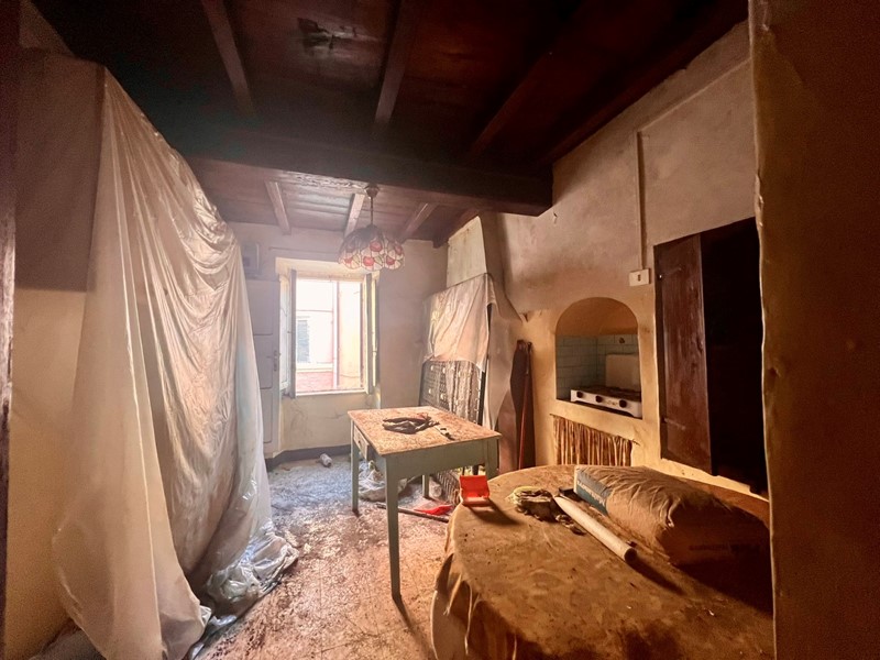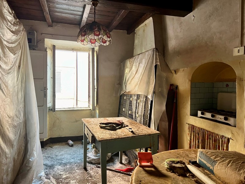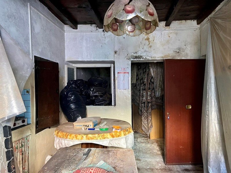 Lo stato interno è totalmente da rinnovare, l'unica fonte di riscaldamento attualmente presente è un caminetto a legna, che unitamente alle credenze a parete testimoniano un passato genuino e semplice.