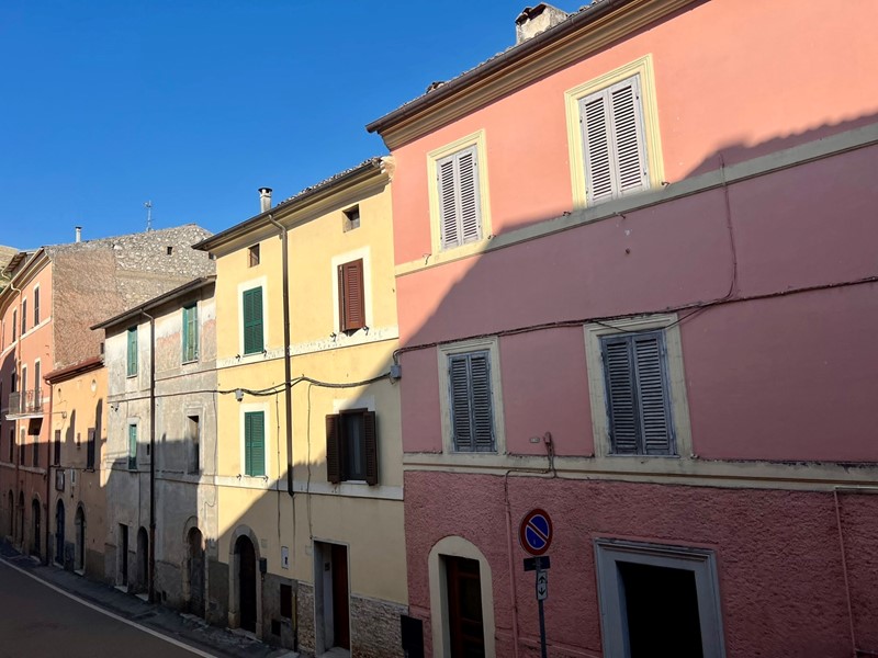 L'unità abitativa è posta al piano primo, al quale si accede tramite scala interna condivisa con altra unità abitativa al piano secondo e perfettamente conservata in stato originario, rivestita con mattonelle in cotto ed assi di legno a chiusura dei gradini. Al piano terra, vi è la pertinenza esclusiva di una comoda cantina, alla quale si può accedere direttamente dall'appartamento tramite la medesima scala e direttamente dal Corso principale grazie al' ingresso indipendente.