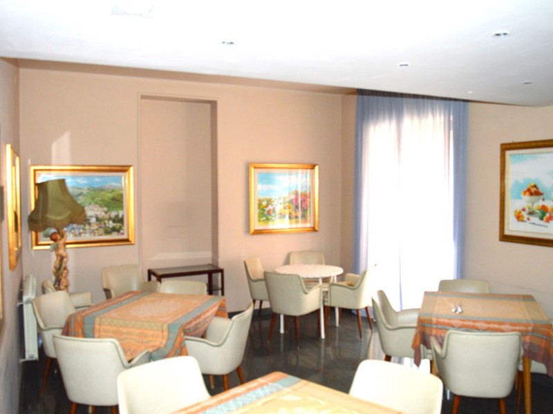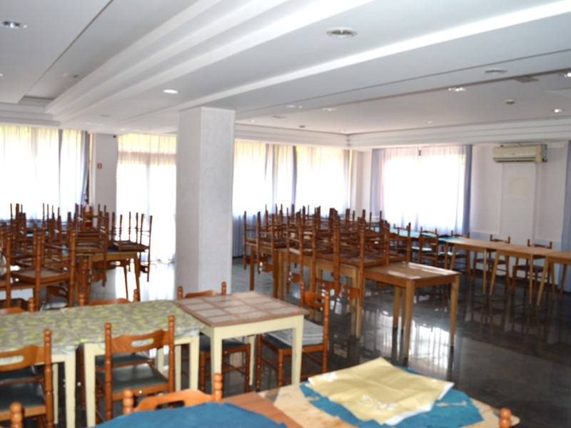La proprietà è composta da ingresso fronte strada, con terrazzo recintato, hall, direzione, bar, salotto comune, grande sala attigua al piano terra; al piano seminterrato (libero su tre lati) vi è cucina, grande sala da pranzo e vari locali tecnici a servizio dell'intera struttura.