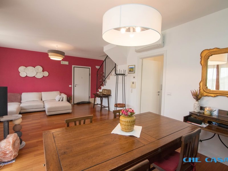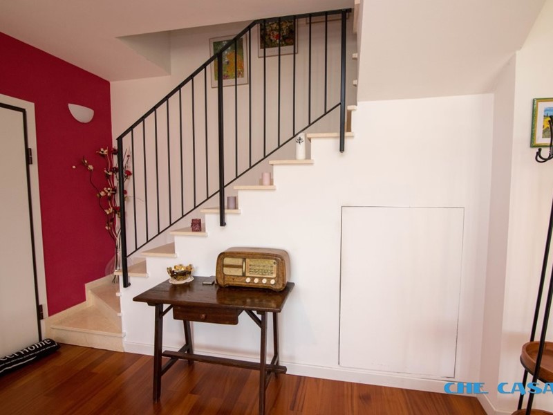 Proponiamo in vendita appartamento sito sulle prime colline di Morciano di Romagna, località Monte del Prete basso a 15 minuti dal mare. L'immobile fa parte di una villetta quadrifamiliare di recente costruzione, collocata di fronte ad un'ampia area verde utilizzata dai proprietari come area gioco/relax. Una rampa d'accesso comune conduce all'ingresso direttamento sull'ampia sala che gode di vedute panoramiche sulle colline circostanti e può contare come valvola di sfogo sulla presenza di un bel terrazzino esterno. Il piano inferiore è completato da un disimpegno che consente l'accesso al bagno ed alla cucina abitabile che, a sua volta dispone di un balcone vista mare. Nel sottoscala è presente una comodo ripostiglio. Il piano superiore è collegato da scala in muratura dritta e comprende 3 camere ed un bagno (con destinazione di sottotetto). Al piano seminterrato è presente un comodo garage. La soluzione è di recente costruzione con riscaldamento a pavimento, cappotto esterno, condizionatori, parquet e finiture di pregio, con una buona classe energetica che assicura consumi contenuti. Per ulteriori informazioni e contatti, CheCasa! di Morciano, 0541.85.80.82. - Maggiori Dettagli: Climatizzato, Balcone o terrazzo vivibile, Porta blindata, Vista mare