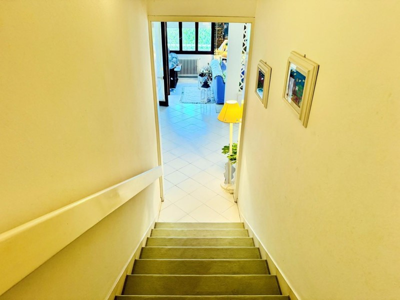 Scendendo pochi gradini si accede al livello inferiore, dove troviamo un comodo garage, tre vani accessori, uno dei quali attualmente adibito a bagno, ideali per creare spazi personalizzati come una zona ospiti, una palestra o uno studio.