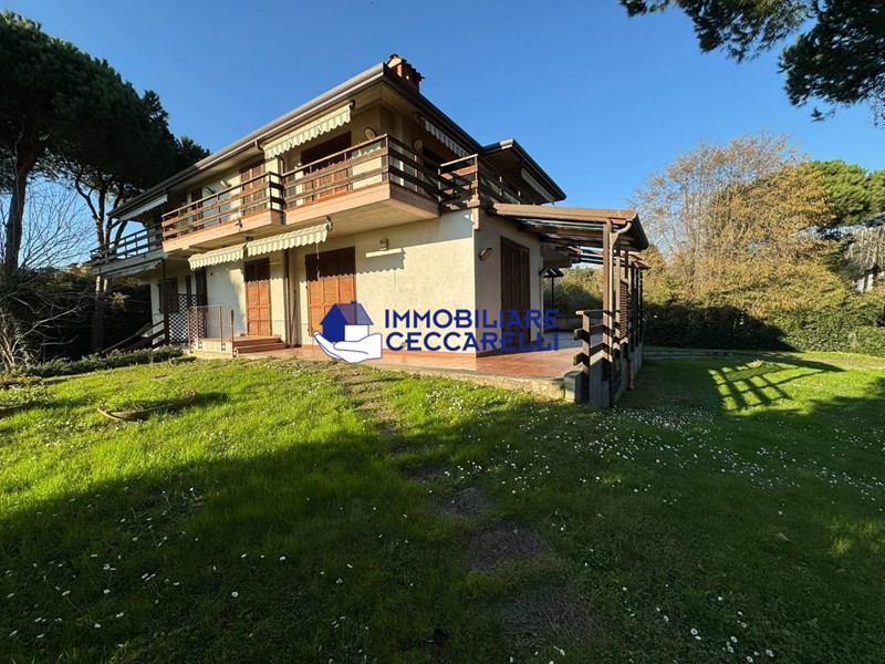 Ronchi - A pochi passi dal mare e dai servizi, in posizione assolutamente riservata, villa monofamiliare di grandi dimensioni immersa in un parco perfettamente curato di oltre 3000 mq. Elevata su due piani fuori terra oltre al seminterrato, si compone al piano terra di ingresso, ampio salone, sala da pranzo, cucina abitabile, ripostiglio, tre camere da letto, tre bagni e terrazze; al piano primo troviamo quattro camere da letto, quattro bagni, due ampie stanze pluriuso e terrazze; il piano seminterrato, cui si può accedere sia da scala interna che da scala esterna, comprende più vani ad uso cantina, taverna e garage.