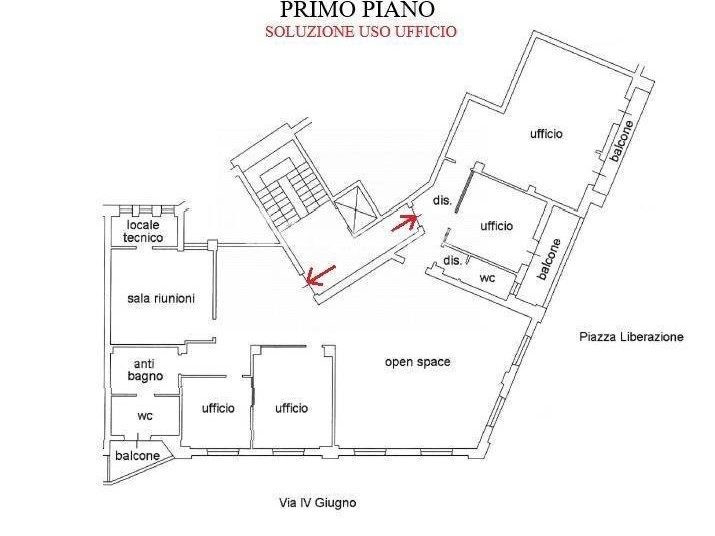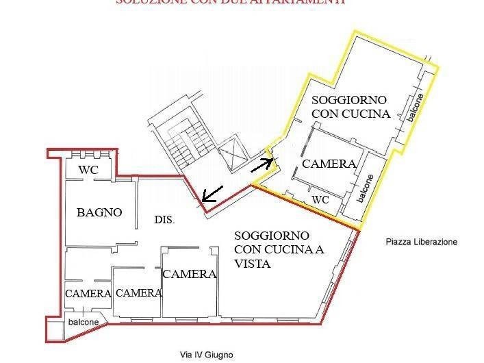 Attualmente adibito a ufficio, l'immobile è già libero e disponibile, con possibilità di trasformazione in: un unico appartamento di circa 280 mq, composto da sei ampi locali più servizi, oppure due appartamenti distinti: