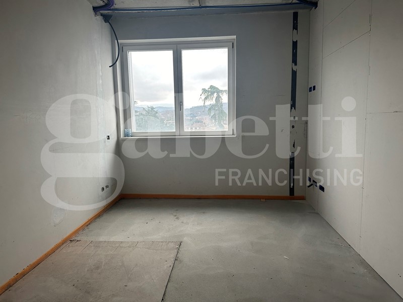 Appartamento in fabbricato di recentissima costruzione, prestigioso, modernissimo, panoramico e composto da un ingresso, un doppio salone con predisposizione angolo cottura a vista, vetrate in tutto il vano, bagno con lavanderia annessa, due camere di cui una con bagno interno ed una cameretta. Balconata Attualmente privo di pavimentazione e porte, da predisporre perché già disponibili i mareriali.