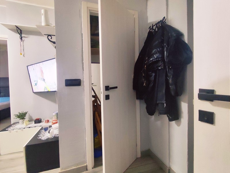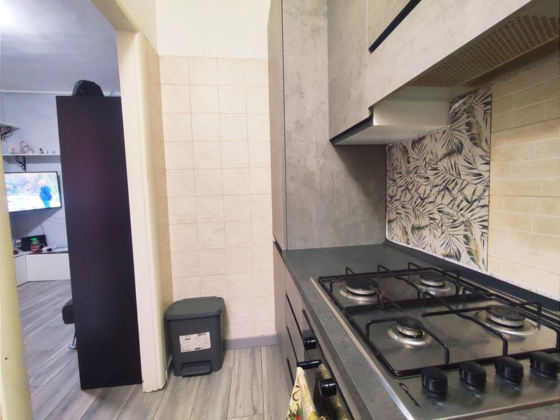 ingresso nel soggiorno, cucinino, camera da letto, ripostiglio, bagno, balcone verandato, cantina di pertinenza.