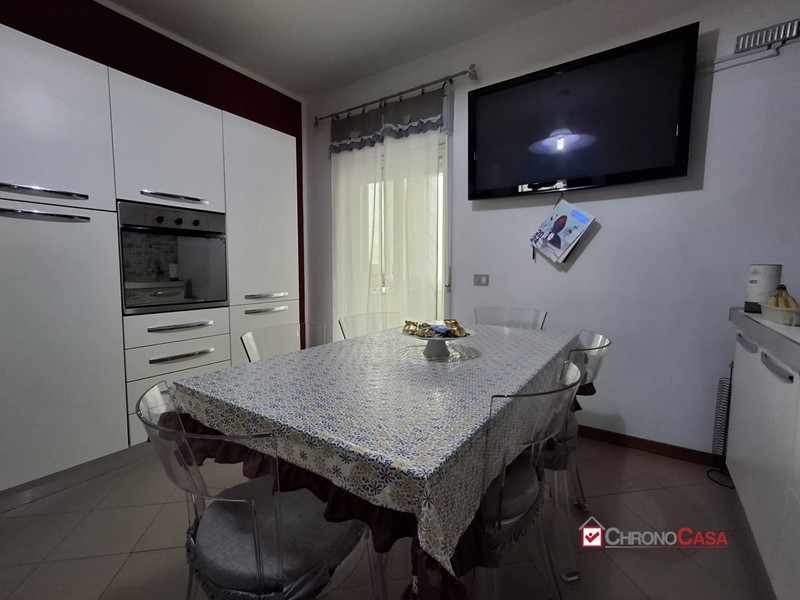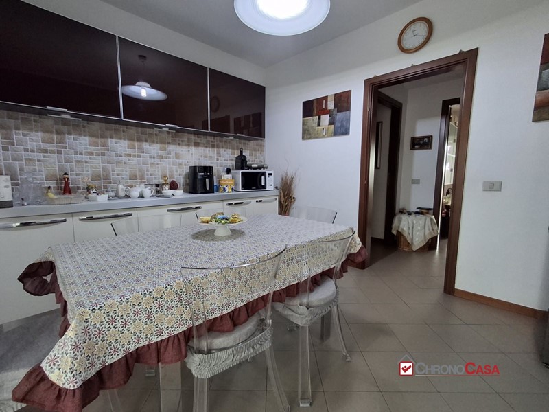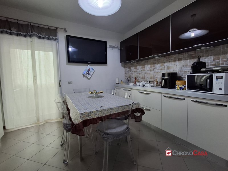 3VS449. Via Bartolomeo Colleoni, 76. Minissale Alto.\nAgenzia immobiliare Chronocasa, filiale della zona Sud, propone in vendita luminoso appartamento al quinto piano con ascensore di un complesso residenziale.\nLimmobile in ottime condizioni ha una metratura di mq 122 ed è composto da: ingresso in corridoio, salone con angolo cottura ( ricavato nel balconcino), soggiorno con affaccio su terrazzino, due camere da letto di cui una con affaccio su terrazzino, bagno e eripostiglio.\nPorte in legno. Pavimento in gress porcellanato. Infissi in alluminio. Pome di calore inverter.\nAmpi spazi esterni.\nPosto auto libero ma non assegnato.\nPrezzo euro 110.000.\nCondominio euro 40,00.\nPer informazioni e/o appuntamenti contattare lo 0902405392 o il 391792323 anche messaggistica whatsapp o scrivere alla mail info.provinciale@chronocasa.it\n - Maggiori Dettagli: Cucina Abitabile, Porta blindata, Climatizzato