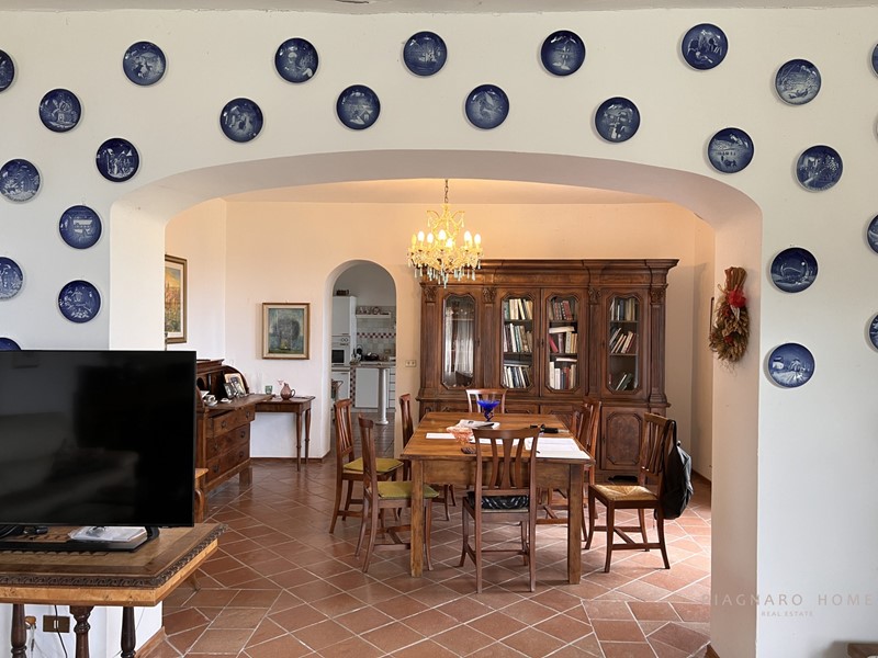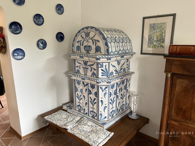 and quot;Pozzo, il più bel paese della Lunigiana and quot;. Recita così il cartello all'ingresso del paese. Un paese che ha visto emigrare tante persone. Chi verso la Francia, chi verso la Svizzera e chi nel nord dell'Italia. Persone intraprendenti con il pallino degli affari che dopo anni sono rientrate al paese nativo e hanno chi ristrutturato la vecchia casa di famiglia e chi l'ha costruita nuova. Questa proprietà fa parte della seconda categoria. Costruita negli anni '90 ampliando un vecchio fabbricato rurale in pietra in una posizione strategica, vicino la strada provinciale e con una vista panoramica spettacolare che spazia dagli appennini alle Alpi Apuane, questa bella proprietà è pronta da vivere. Gli spazi esterni sono ampi e numerosi: dal giardino adiacente la casa e recintato con la possibilità di fare una piscina e con 120 piante di olivi e tante altre piante da frutto (kiwi, peri, susini, more), al porticato esposto a sud est per passare in luogo aperto tanti momenti di libertà in assoluta privacy. La casa è suddivisa su due piani collegati internamente da una ampia scala facilmente percorribile. Al piano terra troviamo l'ingresso nella luminosa sala con ampie vetrate da cui godere del bel panorama in ogni stagione. Qui c'è anche la famosa and quot;Stùbe and quot; Alto Atesina; una stufa caratteristica a legna con alimentazione dall'esterno, bella, efficiente e da arredo. La sala è collegata al soggiorno e alla cucina abitabile dove c'è un'altra stufa a legna e la possibilità di accedere al portico per poter pranzare o cenare all'aperto. Completa il piano la lavanderia, un bagno e il garage e il portico. Al piano superiore troviamo le 4 camere da letto di cui una dotata di bagno privato e il bagno. Nel disimpegno c'è un ampio armadio a muro. Completa il piano l'ampio terrazzo esposto a ovest e un balcone collegato alle due camere.\nPozzo si trova nel comune di Mulazzo. Si raggiunge in 15 minuti dall'uscita dell'autostrada di Pontremoli. In circa un'ora si raggiungono le località di mare, le cinque terre e la Versilia. In poco più di un'ora si raggiungono gli aeroporti di Pisa e Parma. - Maggiori Dettagli: Camino, Terreno