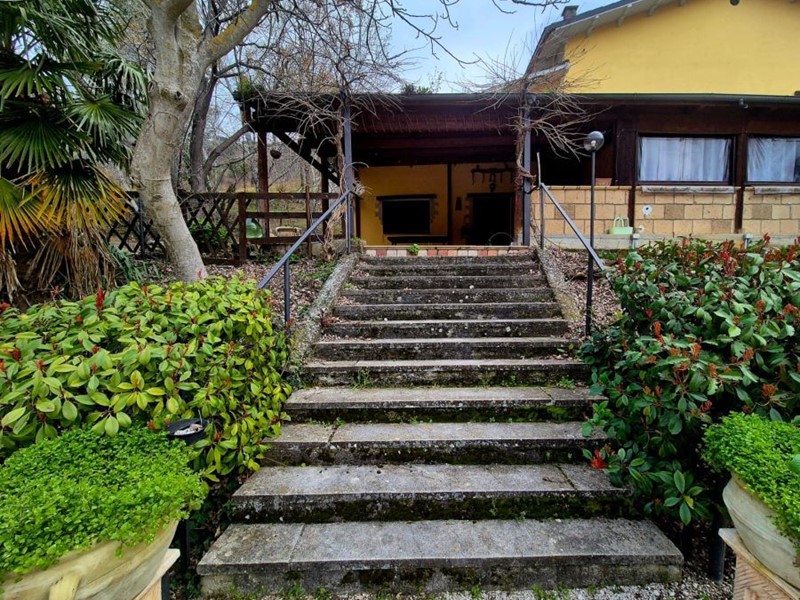 Agriturismo IL SOLE\n\nManoppello (Pe) Contrada Tratturo\n\nSi propone Agriturismo composto da ristorante di 135 mq, duplex di 138 mq, il tutto su 7 Ettari di Terreno Agricolo comprensivo di circa 100 piante di ulivo.\n\nIl locale commerciale totalmente ristrutturato nel 2003 è comprensivo di sala d' ingresso con impianto aria condizionata, ampio salone con impianto aria condizionata, ampia veranda con impianto aria condizionata, antibagno, bagno uomo, bagno donna, bagno disabili, locale cucina adibito a ristorazione, magazzino retrocucina, spogliatoio dipendenti con bagno con doccia.\nIl duplex accessibile da entrata laterale è composto da ampio salone con attacchi predisposizione cucina e bagno con doccia. Il piano primo del duplex accessibile internamente è composto da 4 locali da rifinire.\nNotizia molto importante, il tetto è stato ristrutturato nel 2018.\nPosizione ottimale a soli 50 mt dalla strada principale è facilmente raggiungibile data la sua vicinanza alla tangenziale e alle principali arterie di raccordo stradali ed autostradali. L' immobile situato nel Comune di Manoppello (PE) è sito a 2 km dal Comune di Manoppello (PE), ad 3 km dal centro del paese di Turrivalignani (PE) ed a 5 km dall' ingresso autostradale che collega la VILLA all' A14 e all' A25.\nL'immobile è facilmente raggiungibile da quattro arterie stradali che lo rendono facilmente accessibile in pochi minuti dalla Strada Statale Tiburtina Valeria. La casa è posizionata a 5 km dalla Basilica Dei Frati Cappuccini del Volto Santo, a 15 km dagli impianti sciistici direzione Passo Lanciano e dall' and quot;Hotel Mammarosa and quot; e nelle vicinanze degli Eremi facente parte del parco nazionale della Majella quali Santo Spirito a Majella e San Bartolomeo.\n \nCliccando questo link si può accedere al video che rappresenta l' interno e l' esterno dell' immobile\nhttps://youtu.be/cKyt6DNfCgo?si=NcHJFPIZXH3d20PP\n\nConsulente disponibile per visite in zona. Siamo presenti a Pescara - Piazza della Marina.\n\nChiama questi numeri 0861- 1850831 o 392/5933041 per fissare una visita,\nanche via WhatsApp, con reperibilità 9.00 - 19.00 - Maggiori Dettagli: Ripostiglio, Camino, Cassaforte