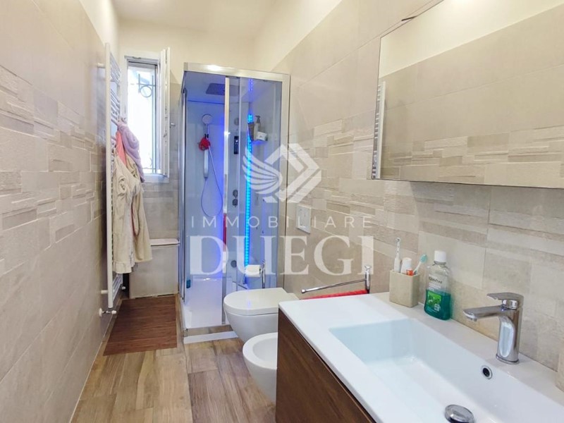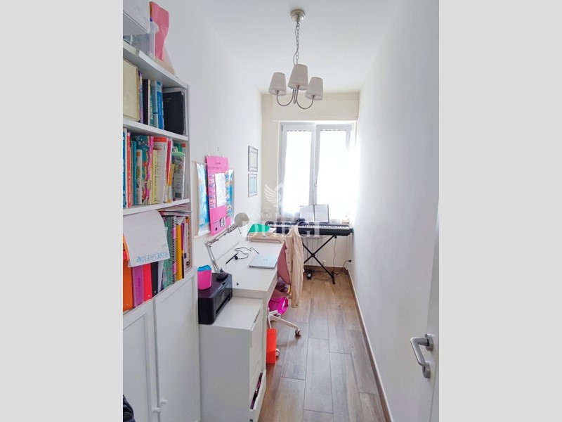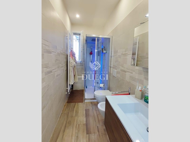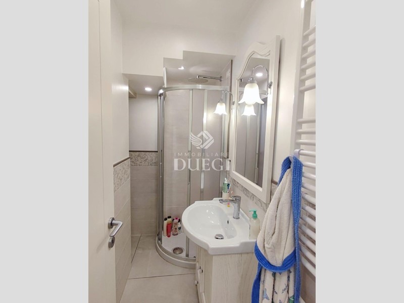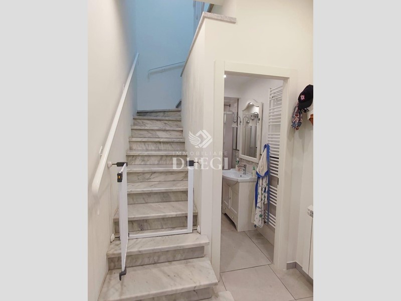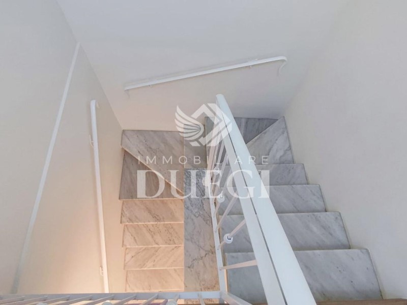 Attraverso una scala in marmo, si raggiunge il piano superiore, dove troviamo la zona notte composta da due camere matrimoniali di cui una con balcone fronte strada, stanza armadi/studio/cameretta e bagno con doccia idromassaggio e bagno turco completo di finestra.