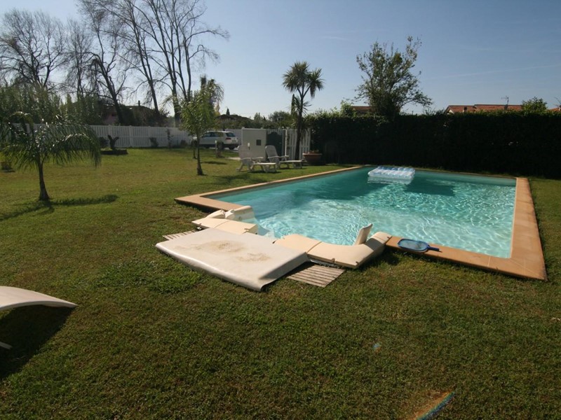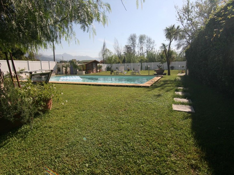 Rif. 522 Marina di Carrara nel verde di un tranquillo quartiere a pochissimi minuti dal mare e dal centro commerciale naturale vendiamo SPLENDIDA VILLA con circa 1500 mq di GIARDINO e PISCINA. Piano terra: ingresso, salone doppio, cucina abitabile, grande dispensa, camera matrimoniale con bagno ed altri 2 bagni. Piano primo: una camera con bagno, cabina armadi e terrazza di circa 25 mq, altra camera con balcone ed un altro bagno. Esternamente abbiamo a ridosso della grande cucina una Pergotenda di ultima generazione attrezzata per pranzare in ogni giorno dell' anno, un bel portico affacciato sul soggiorno arredato con comodissimo salottino estivo ed una grande ed elegante piscina solo da vedere. Il giardino è ben piantumato ed attrezzato e la proprietà, completamente recintata può ospitare al suo interno numerose auto. Veramente bella !!! Euro 820000
