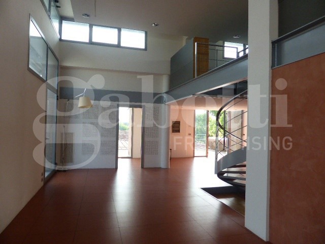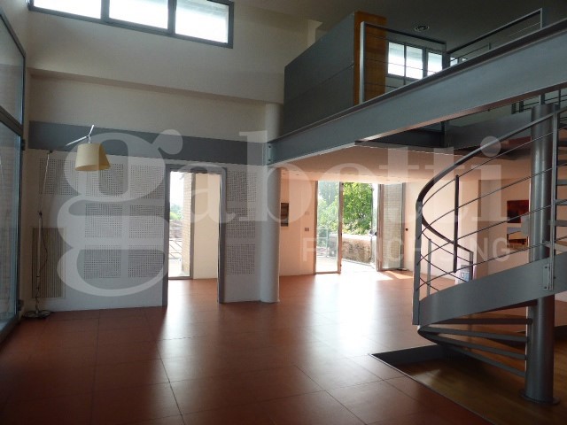prestigioso ufficio in chiave moderna con ampie vetrate e soppalco; 200 mq di spazio aperto divisibile a seconda delle necessità; terrazzo per 200 mq panoramico; finiture di livello superiore, 2 bagni; ingresso indipendente servito da scala privata; parcheggio riservato. Una vera chicca..