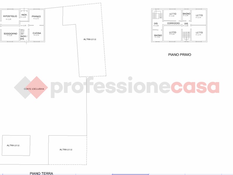 Al primo piano, a cui si può accedere attraverso due scale interne, quattro ampie camere da letto, generoso disimpegno e due bagni.