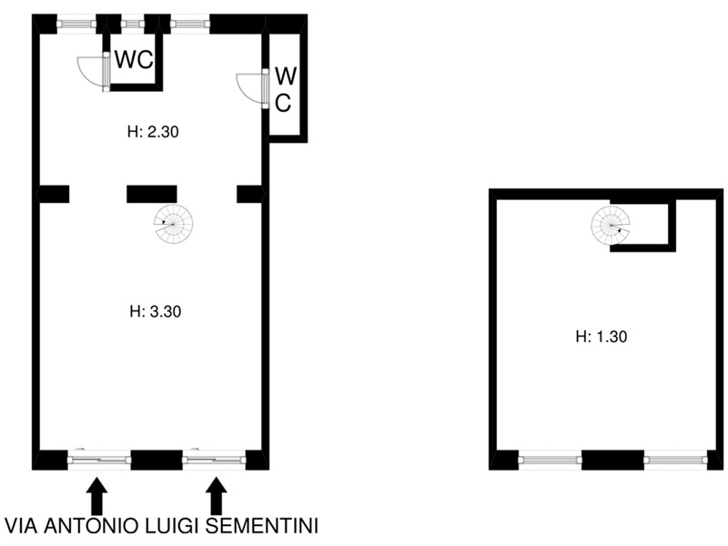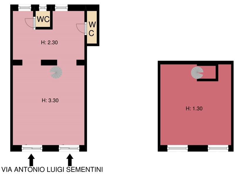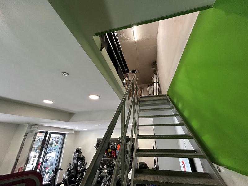 Il locale, con doppio ingresso e due vetrine su strada, si sviluppa su più ambienti ed è così composto: