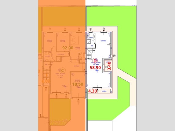 Al piano terra, troviamo un grande e accogliente soggiorno che comunica con una cucina abitabile con accesso diretto alla loggia grazie ad una porta finestra. Completa il piano un bagno.