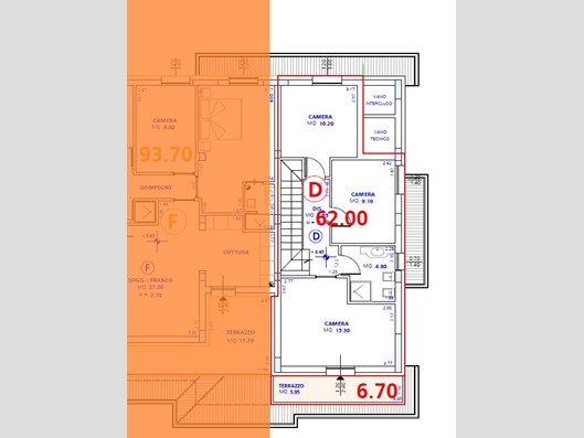 Al primo piano, si sviluppano tre camere da letto (di cui una con un comodo terrazzo) ed altro bagno.