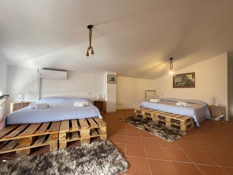 Ampissimo ambiente open space di circa 30 mq, con soffitti inclinati a vista che seguono le forme del tetto, perfettamente isolati e illuminati, ideale come studio, area relax o ulteriori due camere.