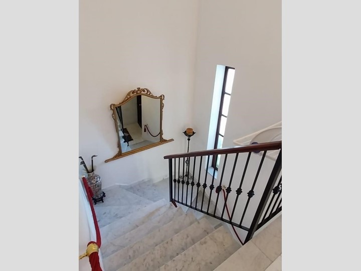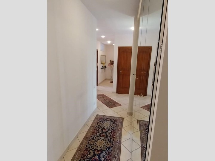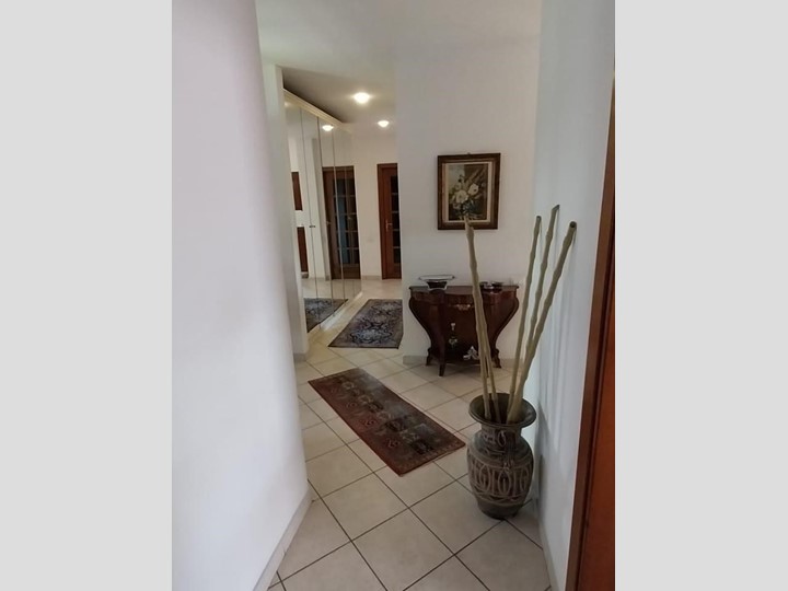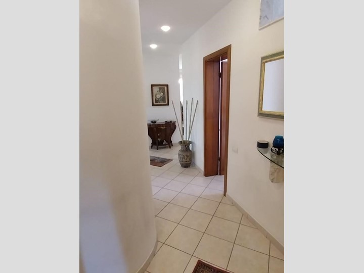 cucina con dispensa, salone doppio con camino, tre camere matrimoniali, 2 bagni e 4 balcone.