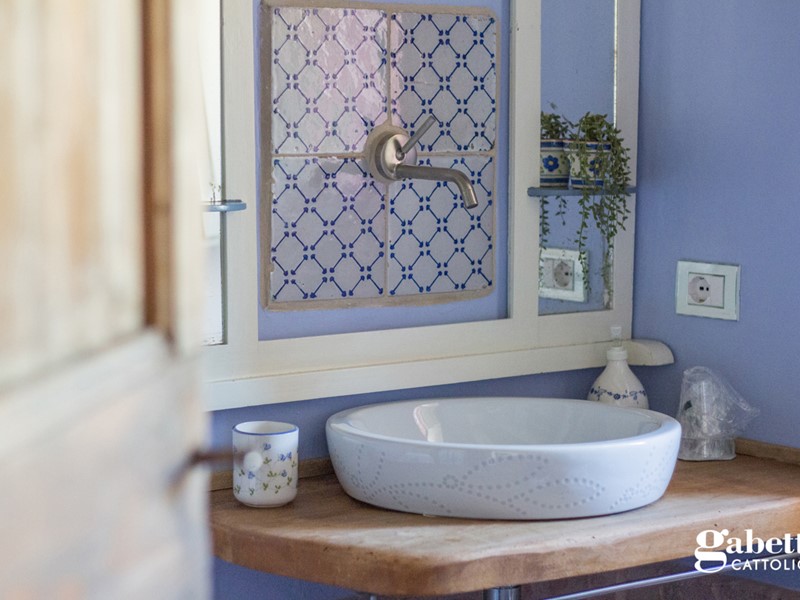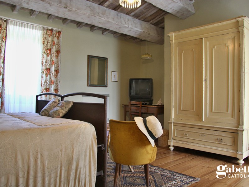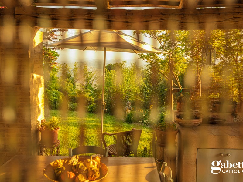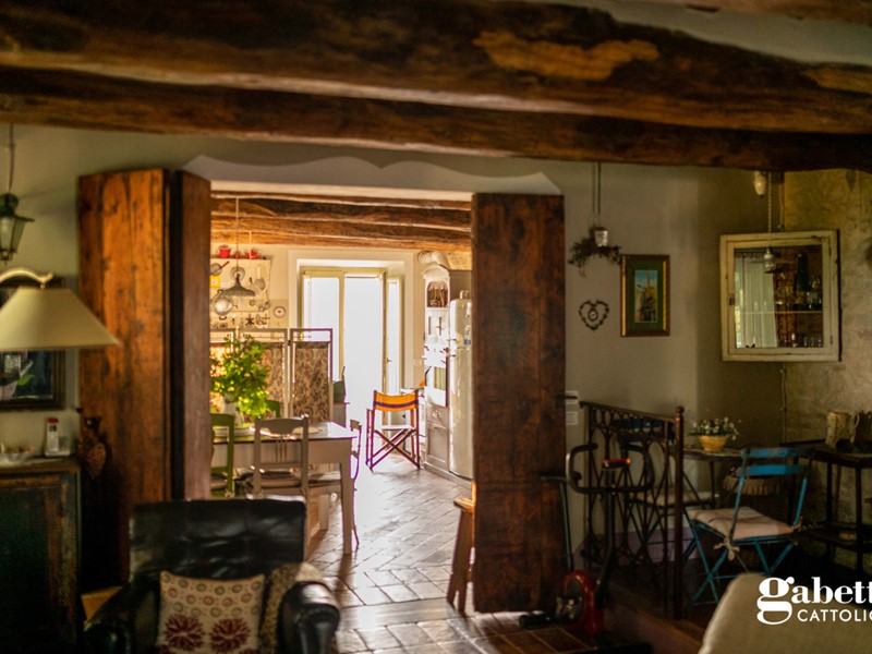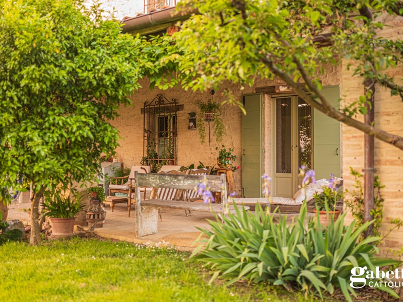 Il tetto in legno ventilato dona comfort e piacere alla vista rifinito con tavelle e travi d'epoca come gli infissi e gli scuri in legno ed in stile così come le scale in mattoni interne.