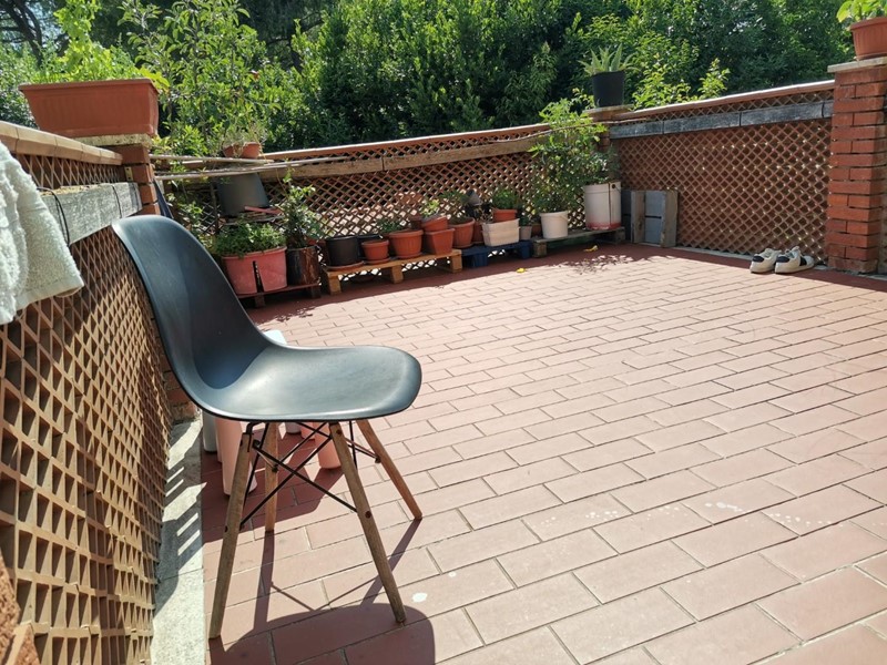 Prima periferia, zona ex ospedale, in piccola palazzina, appartamento di circa 80 mq. posto al piano terra rialzato caratterizzato da una grande terrazza panoramica e così composto: ingresso, soggiorno, cucinotto, disimpegno con accesso al grande terrazzo di circa 30 mq., camera matrimoniale, camera doppia, bagno con doccia ristrutturato recentemente, ripostiglio e resede privato ad uso posto auto all'interno della corte condominiale . L'immobile attualmente locato sarà disponibile da Aprile 2026