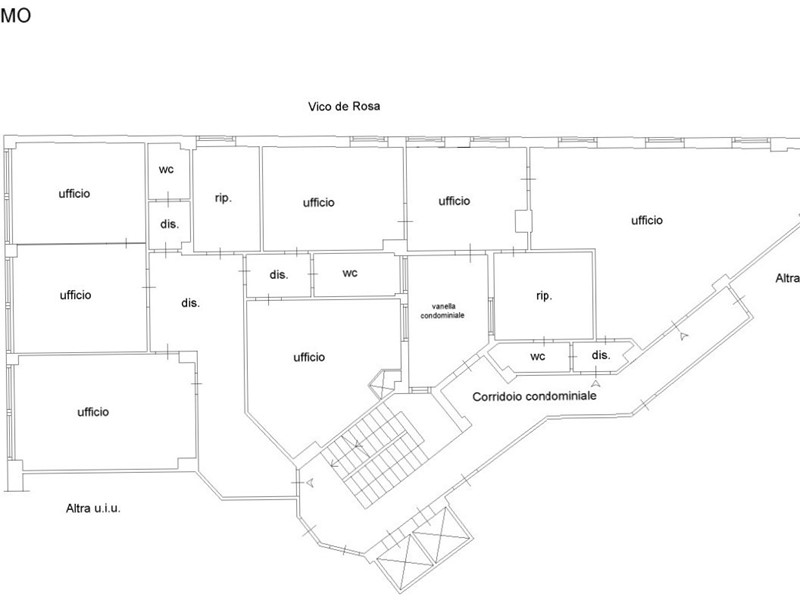 L'immobile, posto al primo, è dotato di 11 vani, tre bagni e un ripostiglio/archivio, in discrete condizioni interne.