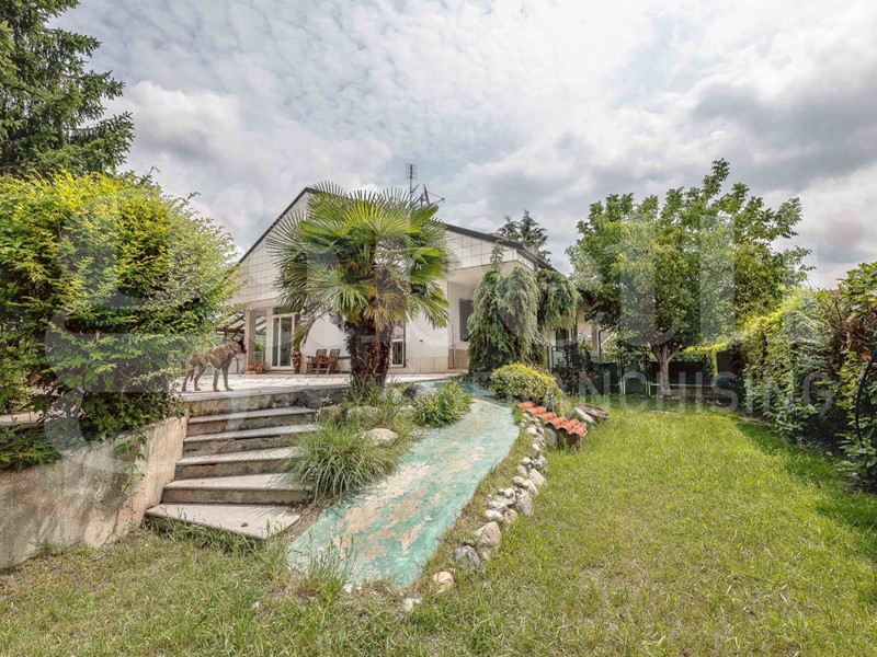 La villa è libera sui quattro lati ed è disposta su due livelli oltre al piano seminterrato che ospita la piscina coperta con sauna.