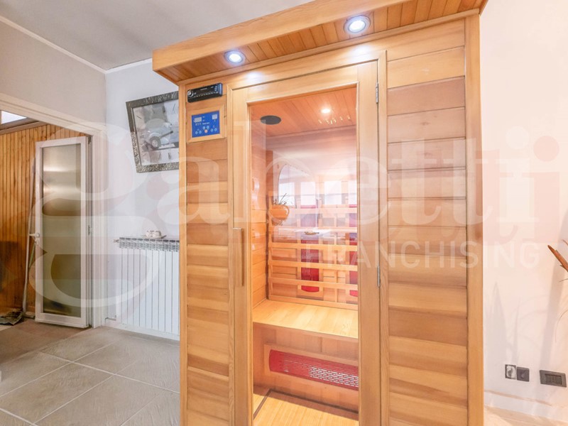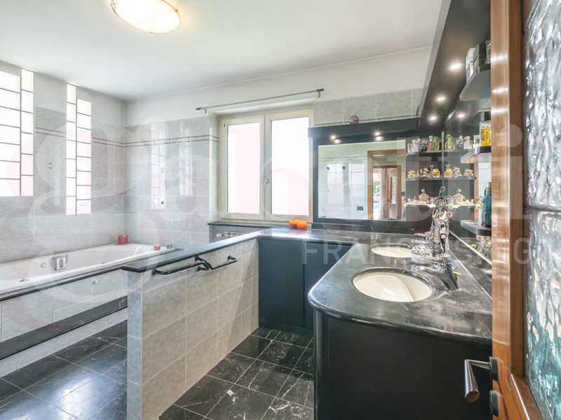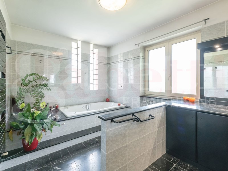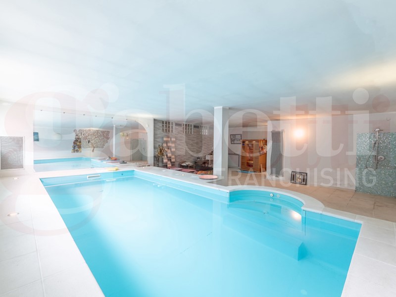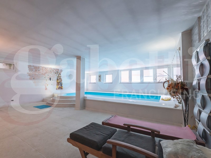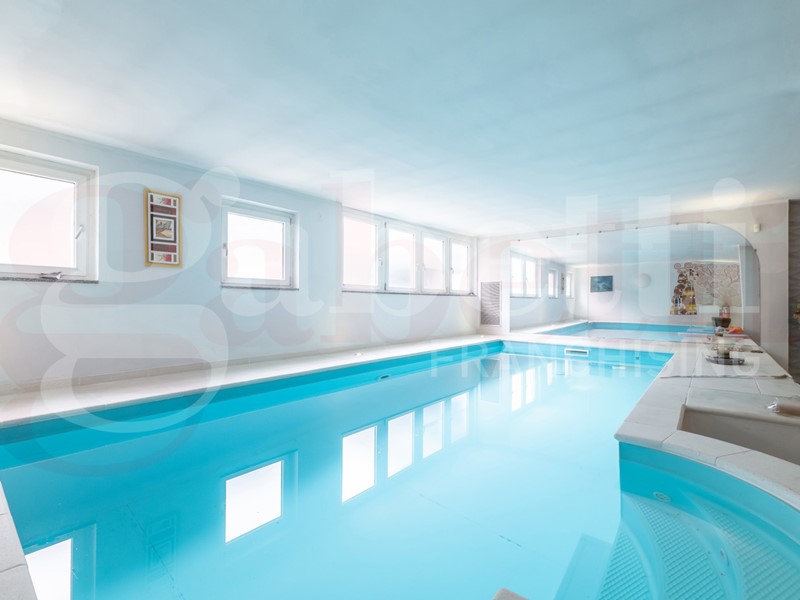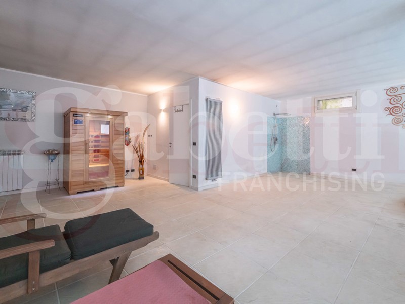 Al piano seminterrato: tavernetta di grande metratura, piscina con sauna e servizi, locali cantina, centrale termica e autorimessa doppia.