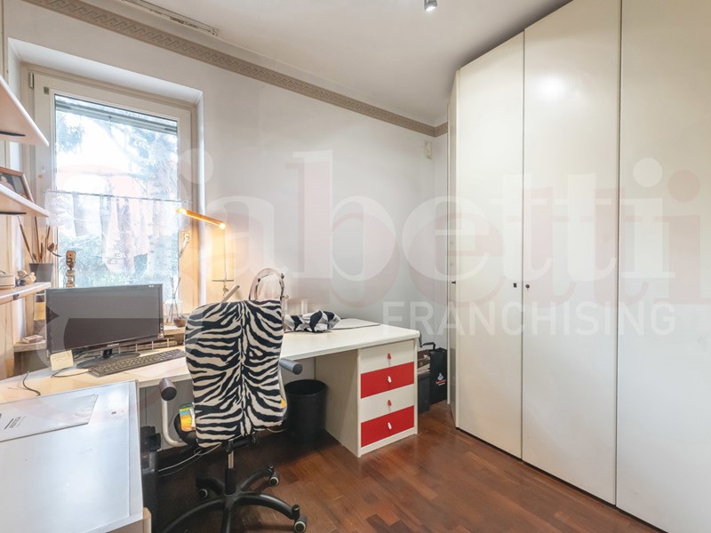 Appartamento al piano terra: ingresso su salone, cucina abitabile, disimpegno, tre camere, studio, sala da bagno e secondo bagno.