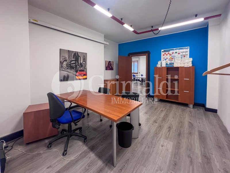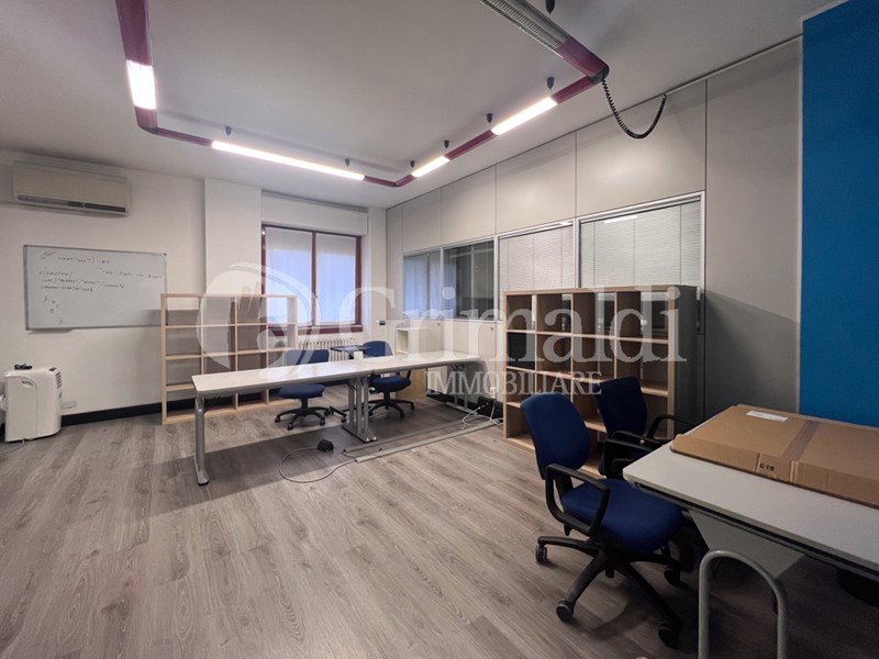 L'ufficio si compone di un ampio open space con area reception, uffici privati, sale riunioni e doppi servizi. Viene locato completo di arredi, come visibile nelle immagini disponibili. La proprietà include inoltre un box di 60 mq al piano interrato, ideale anche per uso deposito.