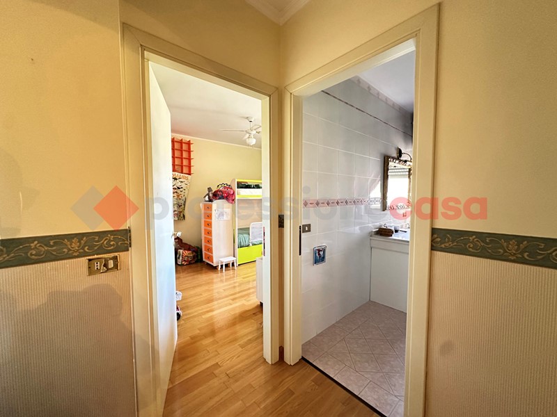 La zona notte del piano principale ospita due camere da letto, una delle quali con bagno dedicato, offrendo comfort e riservatezza.