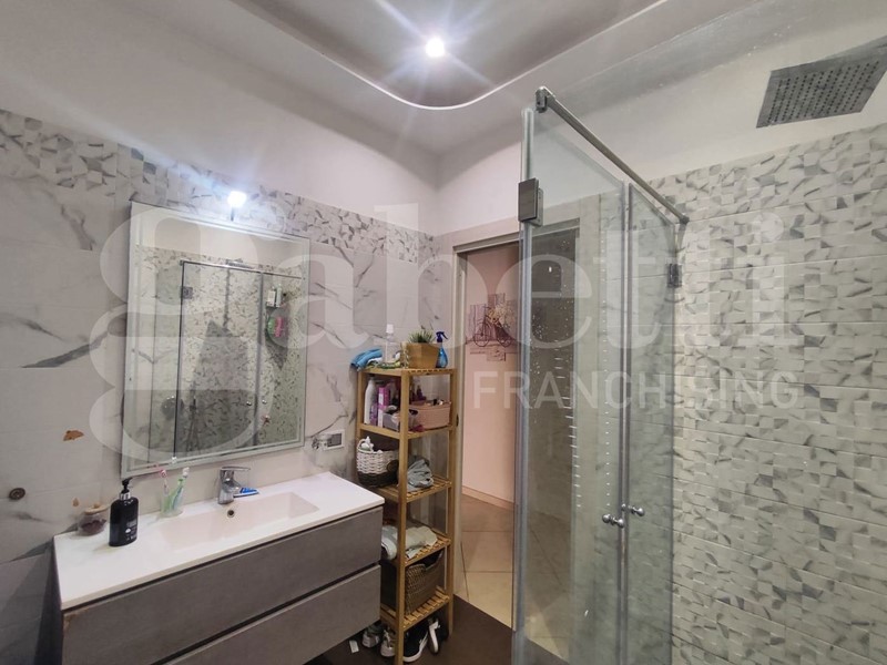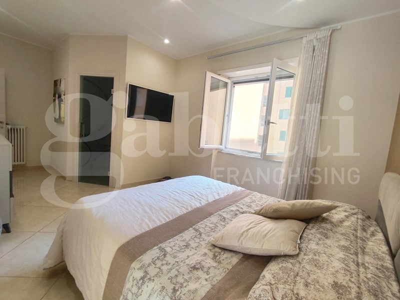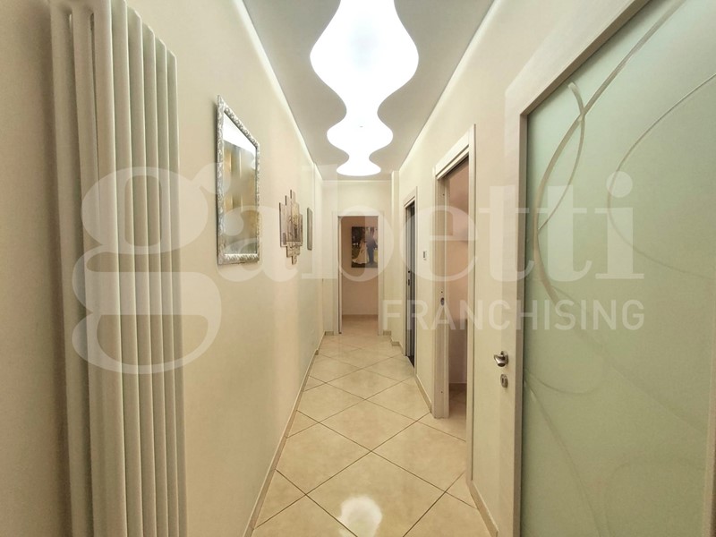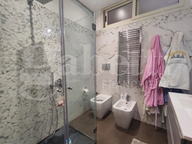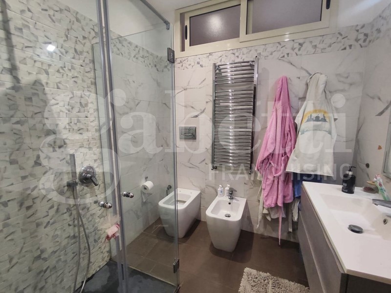 La presenza dei doppi servizi, con bagno privato nella camera matrimoniale, garantisce il massimo comfort e privacy, valorizzando ulteriormente la vivibilità dell'immobile. La recente ristrutturazione, elegante e contemporanea, caratterizzata da controsoffitti di design dotati di faretti incassati, infissi in PVC doppio vetro camera, muniti di zanzariere e tapparelle con apertura elettrica, comprende un impianto di riscaldamento autonomo e predisposizione per condizionatori.