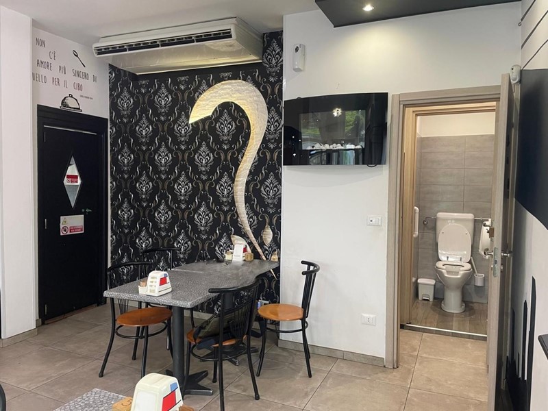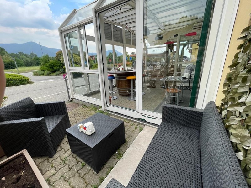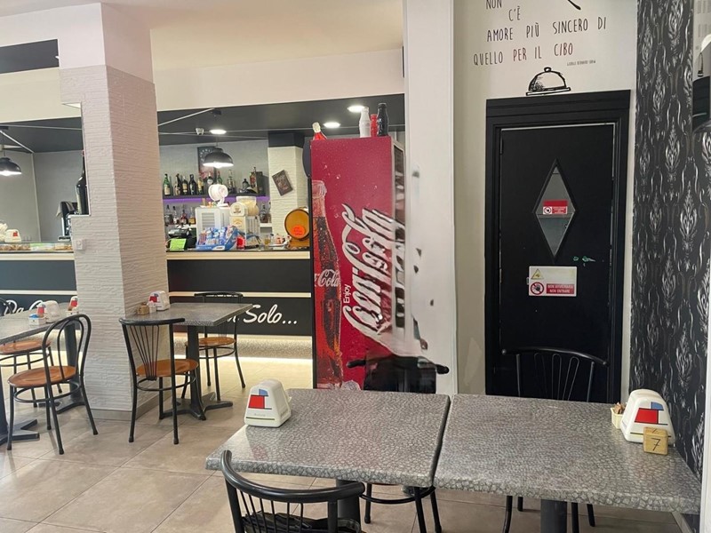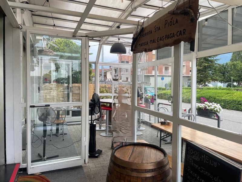 Sul fronte del locale, direttamente collegato alla sala principale, si trova un dehors su suolo privato, strutturato come un padiglione coperto con circa 25 posti a sedere aggiuntivi. Completamente vetrato e dotato di porte scorrevoli, è particolarmente apprezzato nei mesi caldi per la buona ventilazione naturale e la notevole luminosità che dona agli spazi interni.