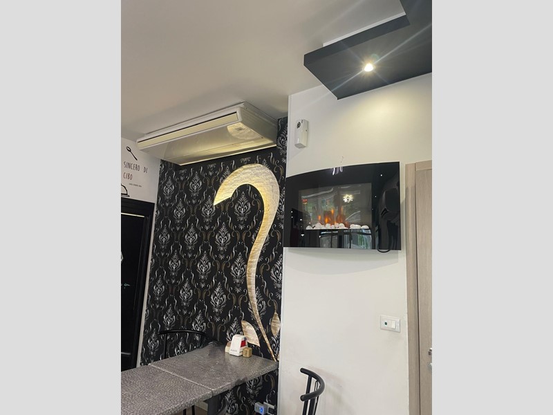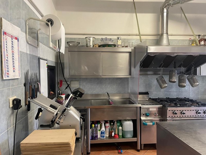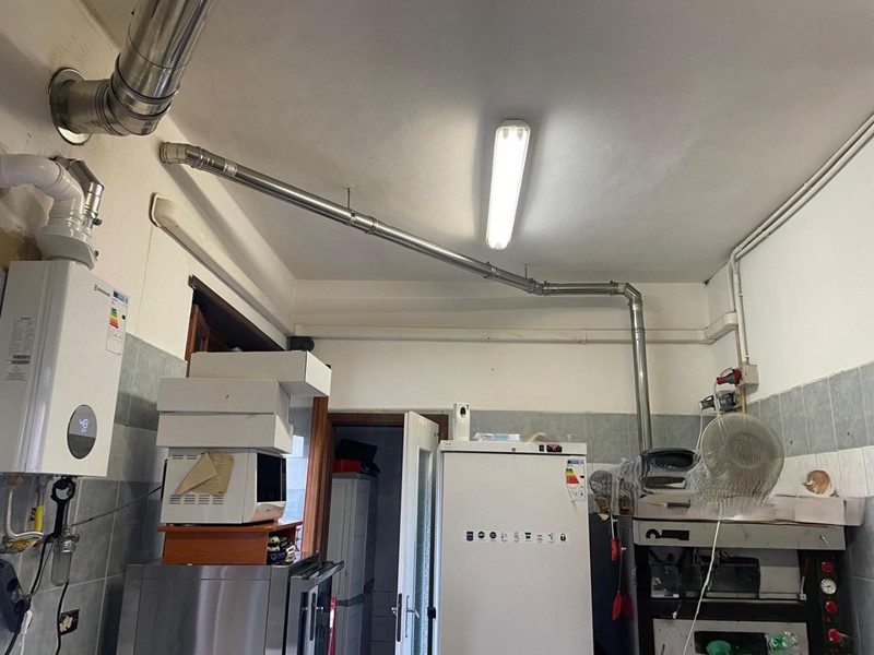 L’attività dispone di attrezzature moderne e ben tenute. La cucina è dotata di canna fumaria per la cucina a gas, una seconda canna dedicata al forno per la pizza, e aspirazione forzata per il ricircolo dell’aria.