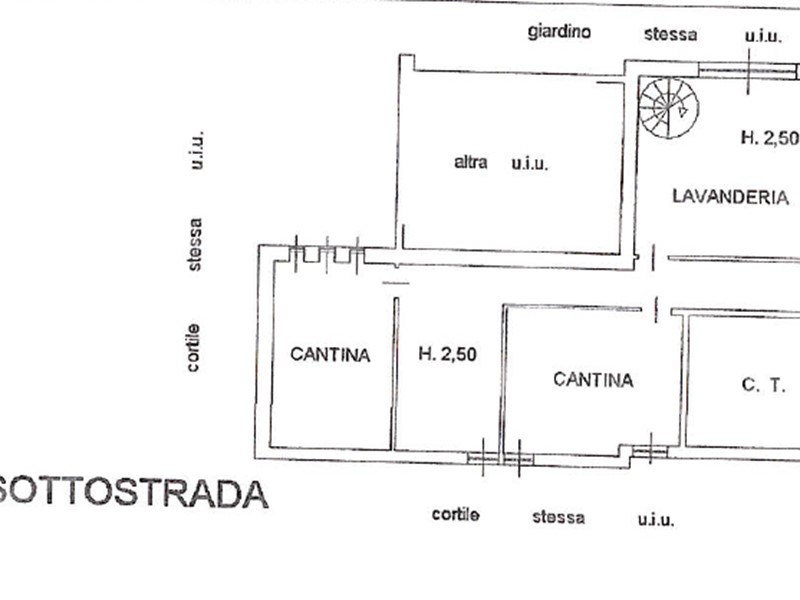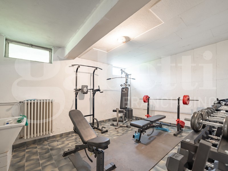 Al PIANO SEMINTERRATO invece si trova uno spazio suddiviso di c.a. 145 mq composto da: lavanderia, palestra, cantina e ampio box auto di c.a. 26 mq.
