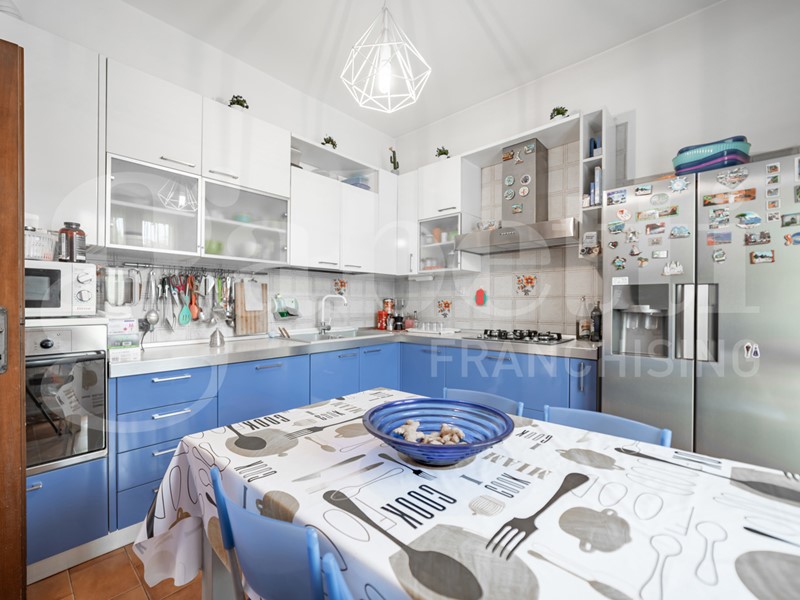 Al PRIMO PIANO: soggiorno doppio con terrazzo, cucina abitabile con balcone, 3 camere da letto e 2 bagni.