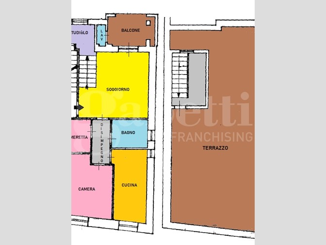 Uno dei punti di forza di questa proprietà è sicuramente lo spazioso terrazzo di 84 mq, ideale per godersi momenti di relax all'aria aperta, organizzare cene all'aperto o semplicemente ammirare il panorama circostante.