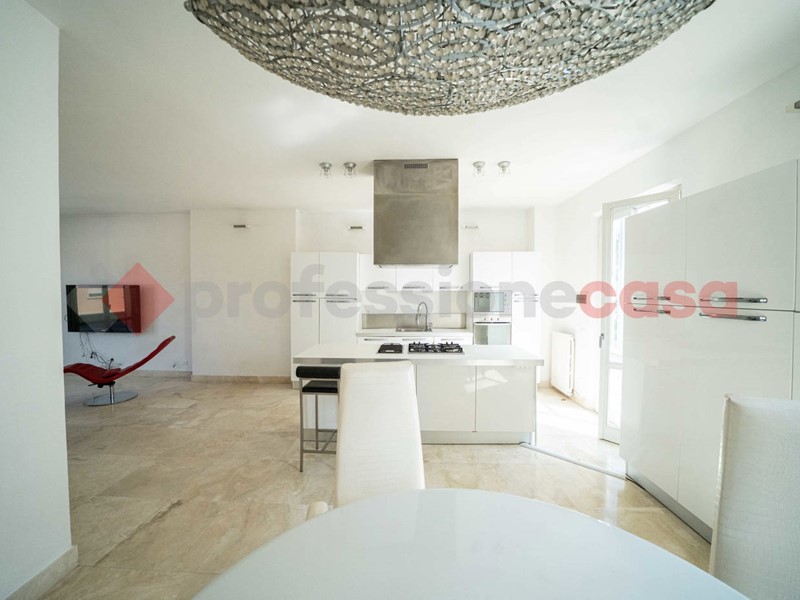 L'appartamento si compone entrando di ampia zona giorno con cucina a vista con isola, sala da pranzo e zona living con due balconi, uno con affaccio ad ovest e l'altro ad est che conferiscono all'immobile luminosità tutto il giorno.