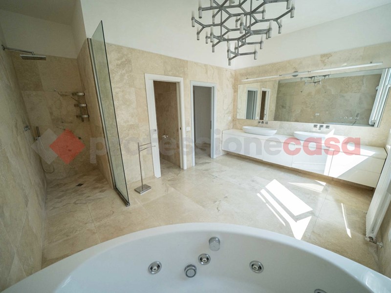 Proseguendo sul solito livello troviamo il disimpegno notte che ci conduce ad una prima camera da letto matrimoniale, un bagno finestrato di ampie dimensioni con vasca idromassaggio e doccia a filo pavimento ed un ripostiglio/lavanderia.