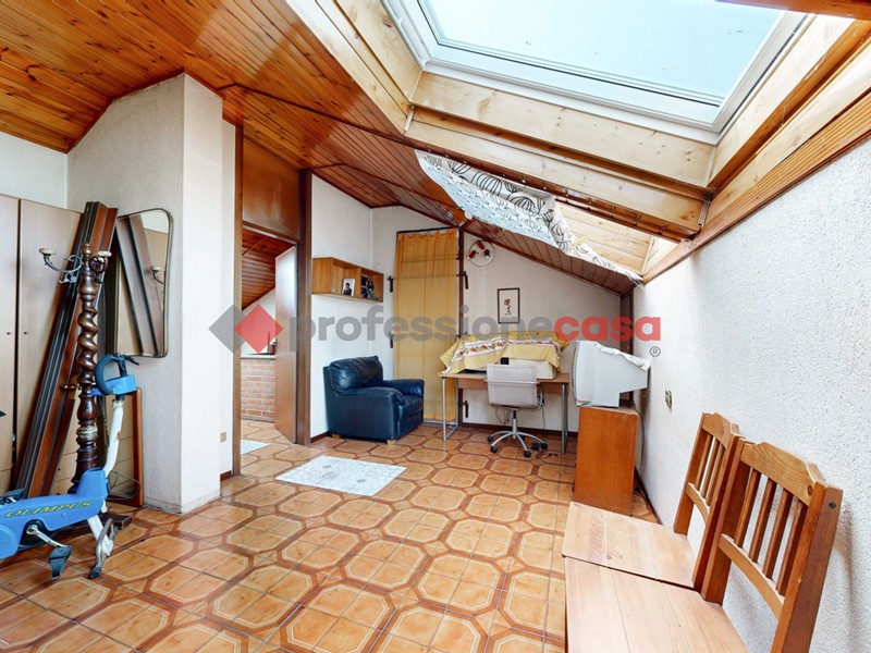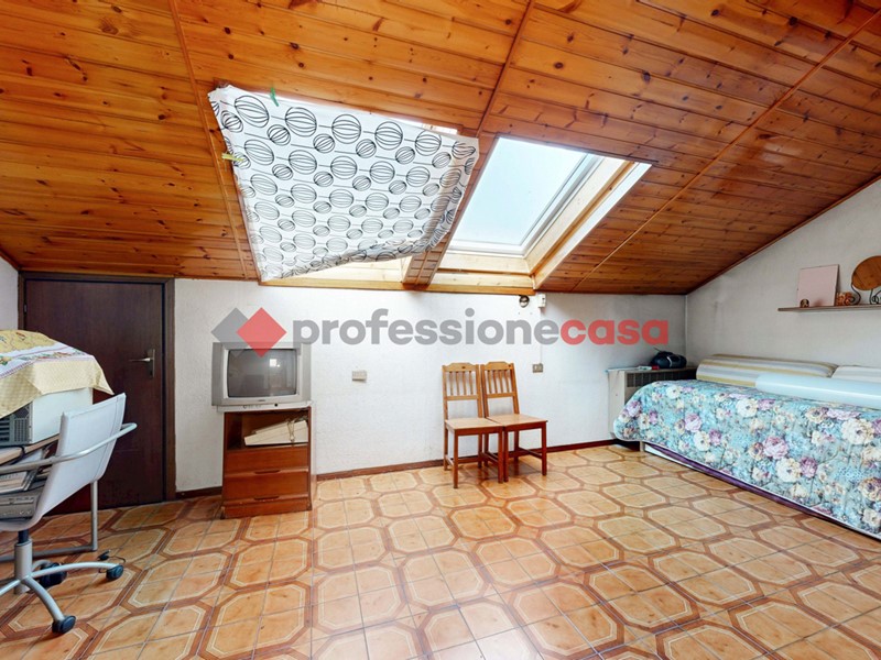 Al piano superiore si sviluppa la mansarda della stessa metratura, dove circa 35 mq sono stati condonati e resi abitabili. Questa zona è composta da un ampio locale multiuso, bagno e due grandi ripostigli bassi. La mansarda può essere raggiunta sia tramite scala interna che attraverso un accesso indipendente dal vano scala condominiale, grazie alla presenza di una seconda porta.