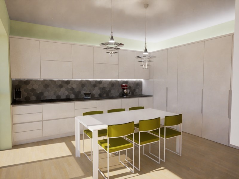 Si accede su un ampio salone, inondato di luce naturale grazie alla grande vetrata che affaccia sul terrazzo, il vero gioiello dell'attico, uno spazio all'aperto che sembra sospeso tra il cielo e la terra. Qui, puoi goderti serate indimenticabili con amici e famiglia, tra cene all'aperto e momenti di relax in un'area lounge arredata con comodi divani e un giardino verticale, rendendolo perfetto per ogni occasione, dalle feste estive ai momenti di tranquillità sotto le stelle. La cucina abitabile ben dimensionata, dispone di un ripostiglio e di un comodo balcone.