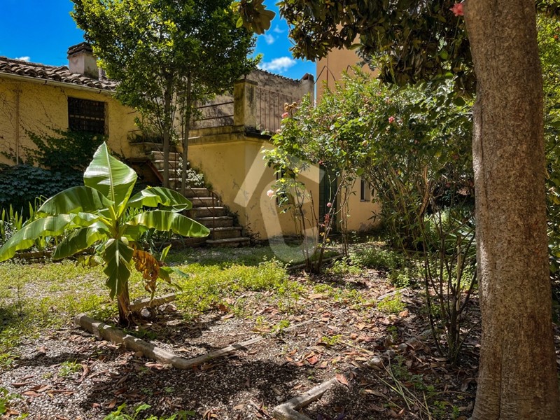L’abitazione si sviluppa su due livelli e comprende un ampio giardino privato con dependance e terrazzo.