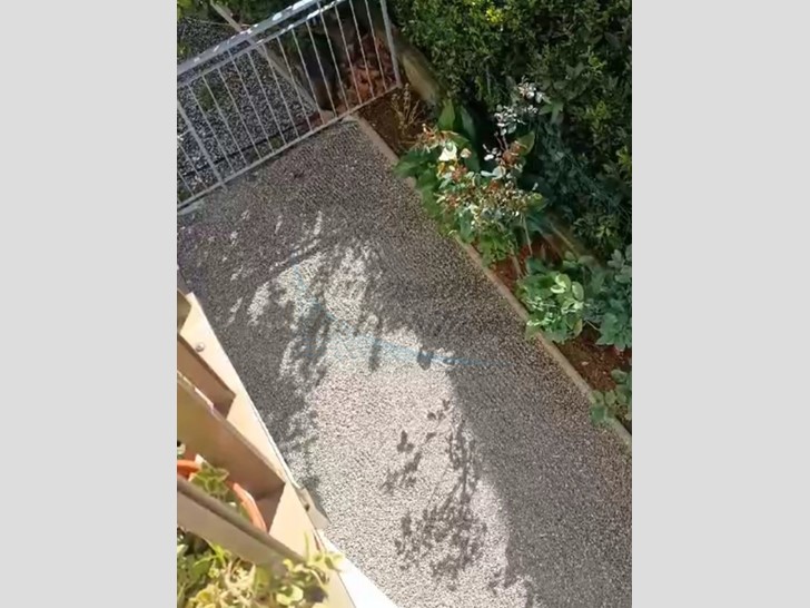 Giardinetto a disposizione per frescheggiare allestito con tavolo e sedie.