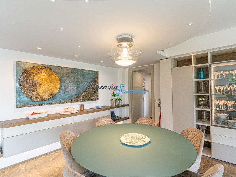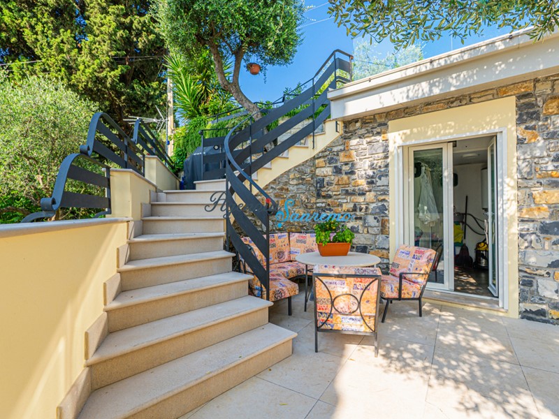 Completano la proprietà un comodo ripostiglio interno, un ulteriore locale esterno con accesso dal giardino e una deliziosa area outdoor attrezzata con zona pranzo, lettini prendisole, ulivi secolari e una piscina in resina con acqua salata– perfetta per rilassarsi ammirando la vista e godere del clima mite della Riviera.