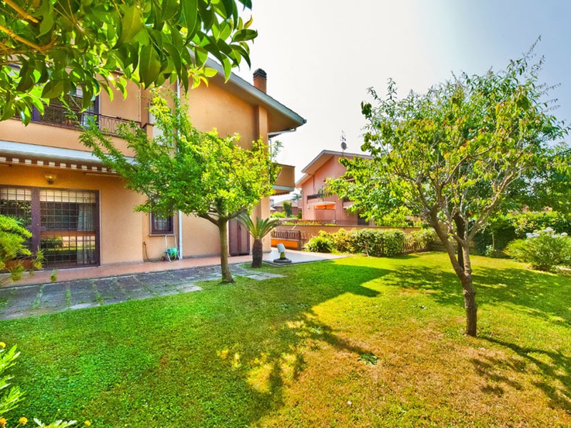 La villa internamente si compone di soggiorno, cucina abitabile, quattro camere da letto (di cui una al piano terra) tre bagni ed un’ampia sala hobby. Completano la proprietà un ampio box auto e un delizioso giardino.