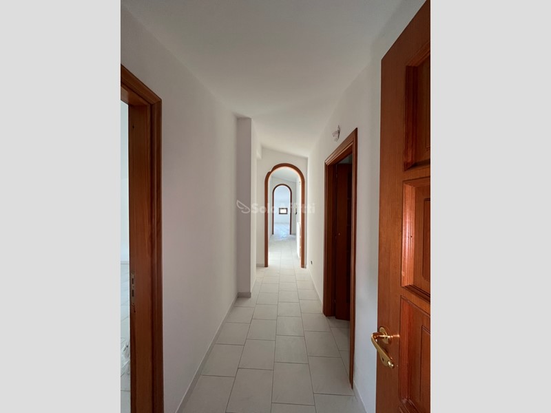 L’attico è composto da una cucina, un ampio e luminoso soggiorno con accesso a un balcone, disimpegno, tre camere da letto, un bagno con vasca e servizi, e un secondo bagno adibito a lavanderia.